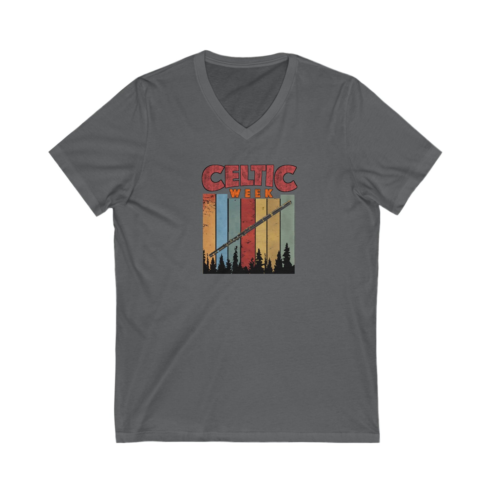 Embrace your love for Celtic music with this stylish Unisex Jersey Short Sleeve V-Neck Tee. Perfect for music festivals, celebrations, and casual gatherings, this t-shirt adds a touch of fun to any outfit. Made from lightweight, breathable fabric, it ensures comfort while keeping you looking chic. The trendy V-neckline and retail fit make it suitable for a variety of occasions, whether you're at a concert or simply enjoying a relaxed day out. Ideal for music lovers and festival-goers, this tee is a great gift for St. Patrick's Day, Celtic Week, or any celebration of Irish culture. Enjoy effortless style while showcasing your passion for music!