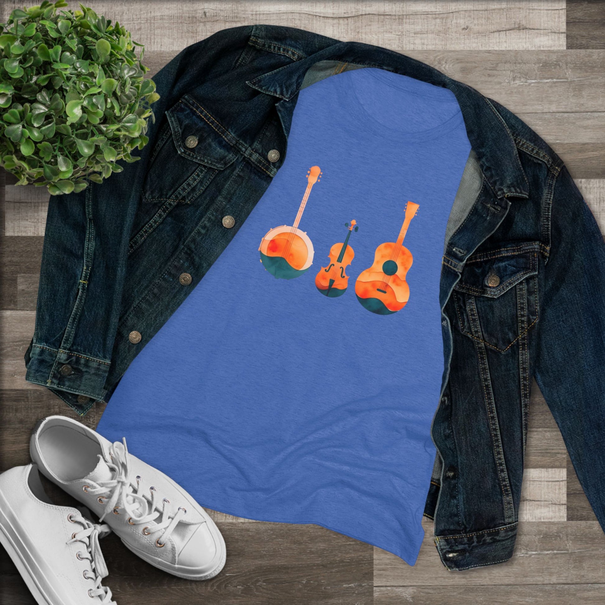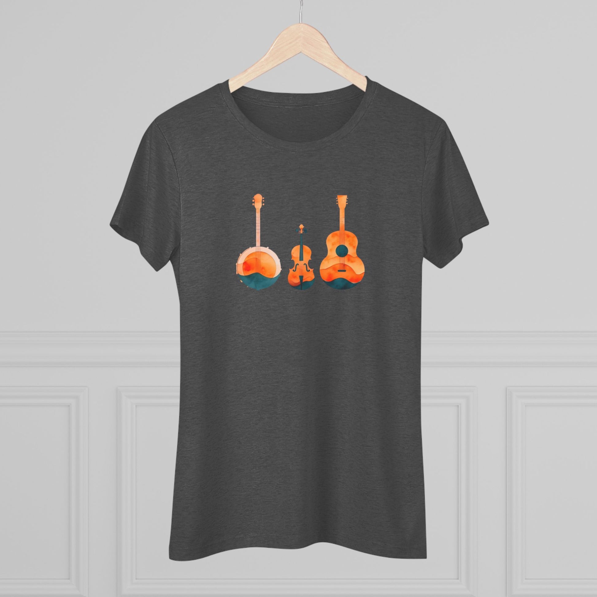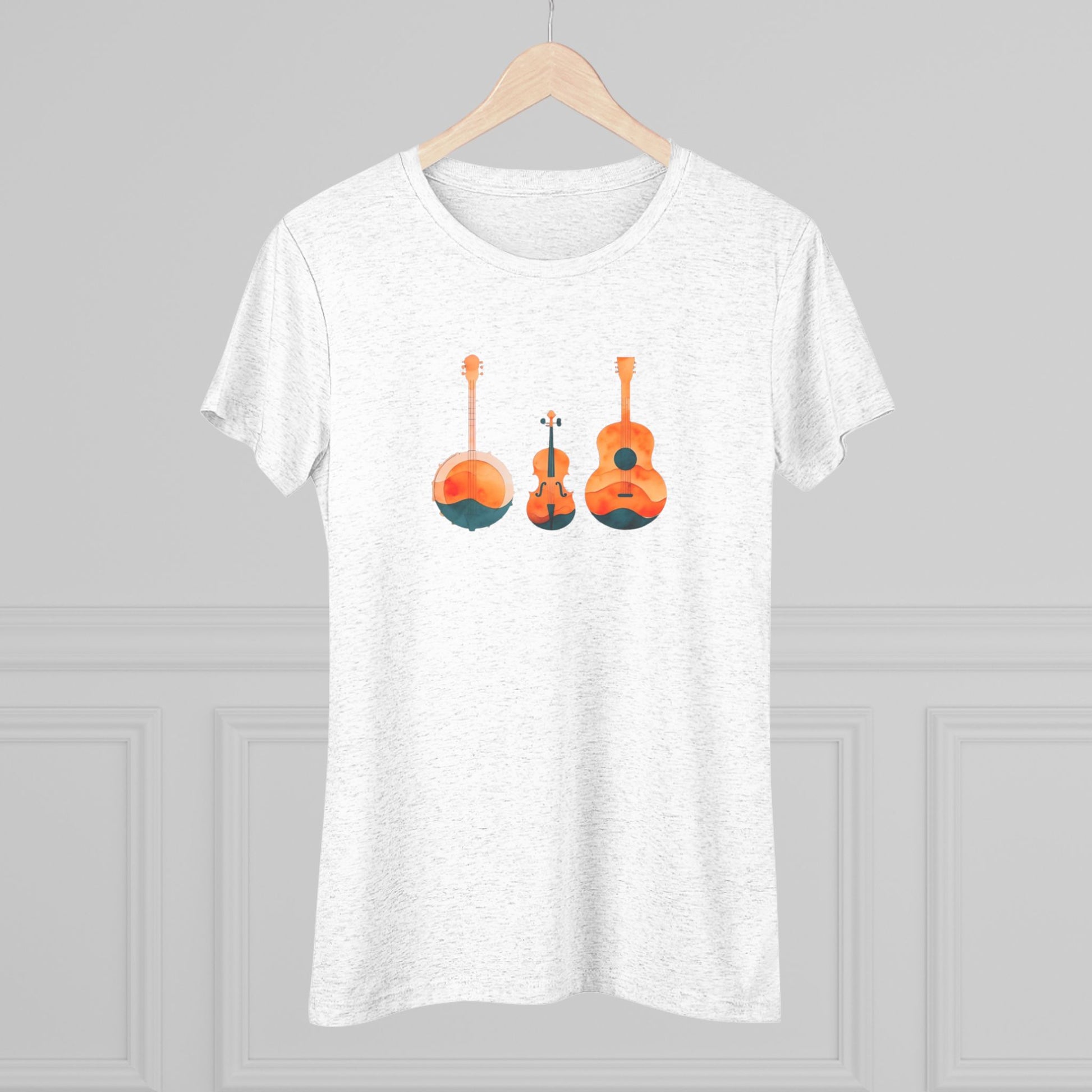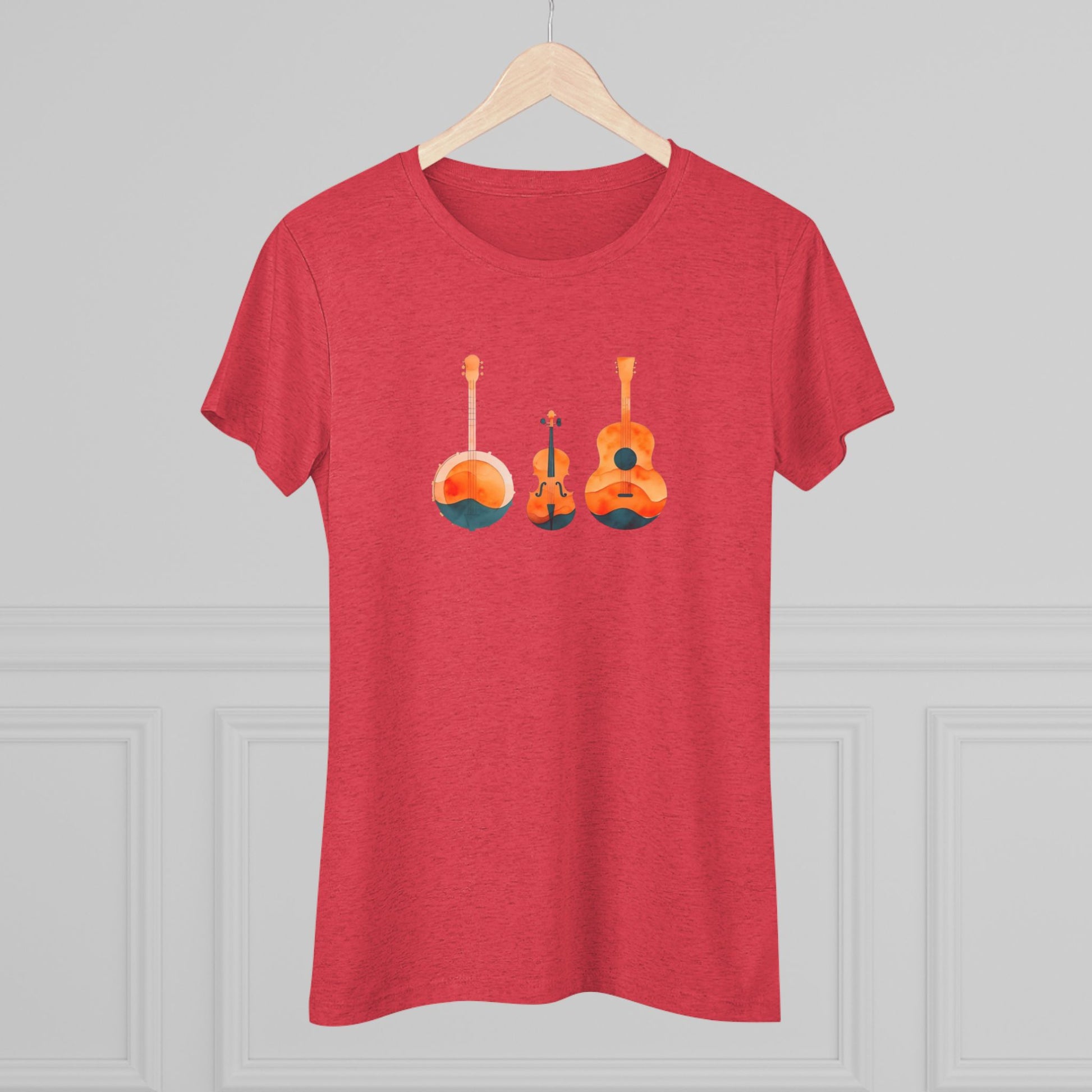 Watercolor Women's Triblend Tee w/ Banjo, Fiddle & Guitar